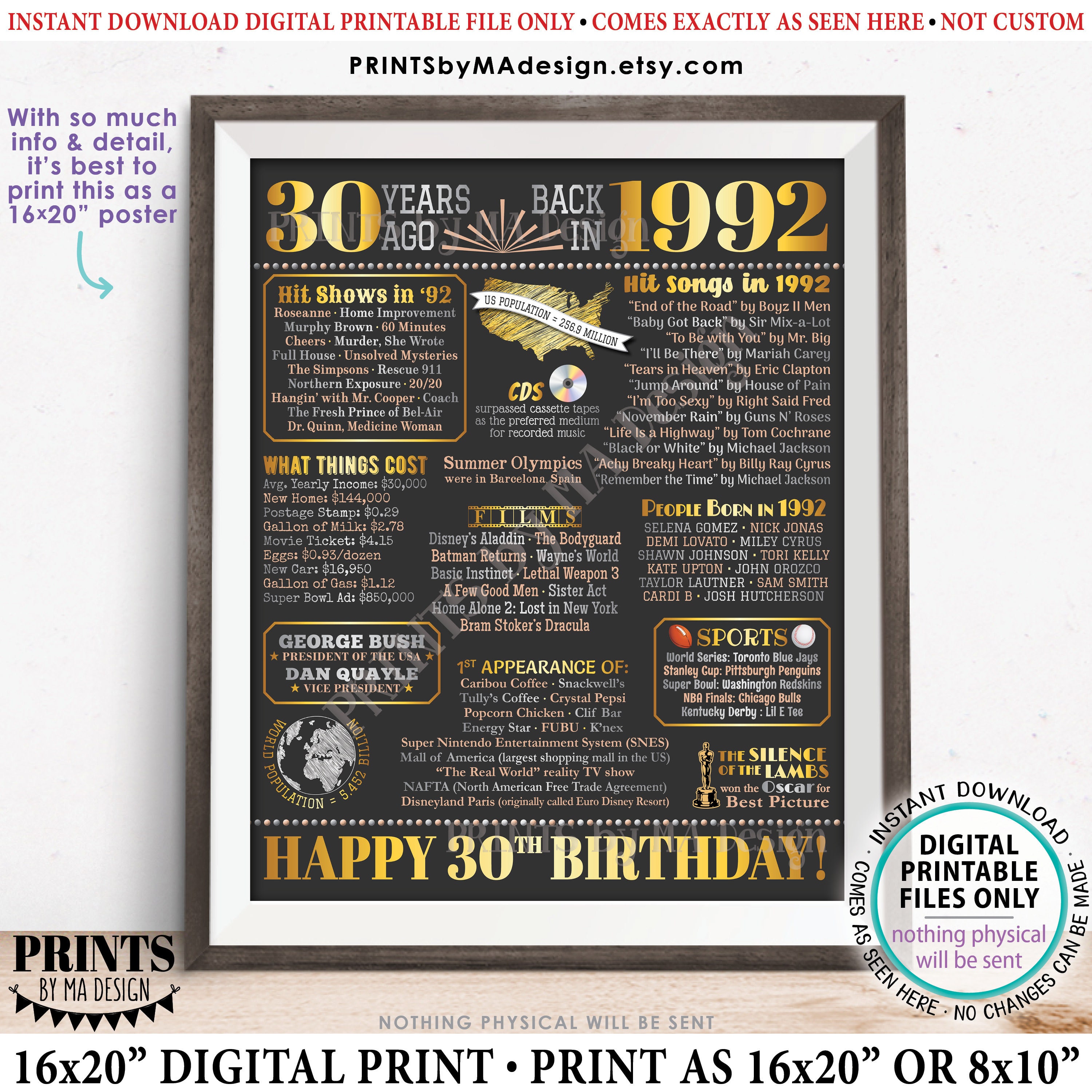 Back In 1992 30th Birthday Newspaper Sign 30 Birthday Poster Etsy Osterreich