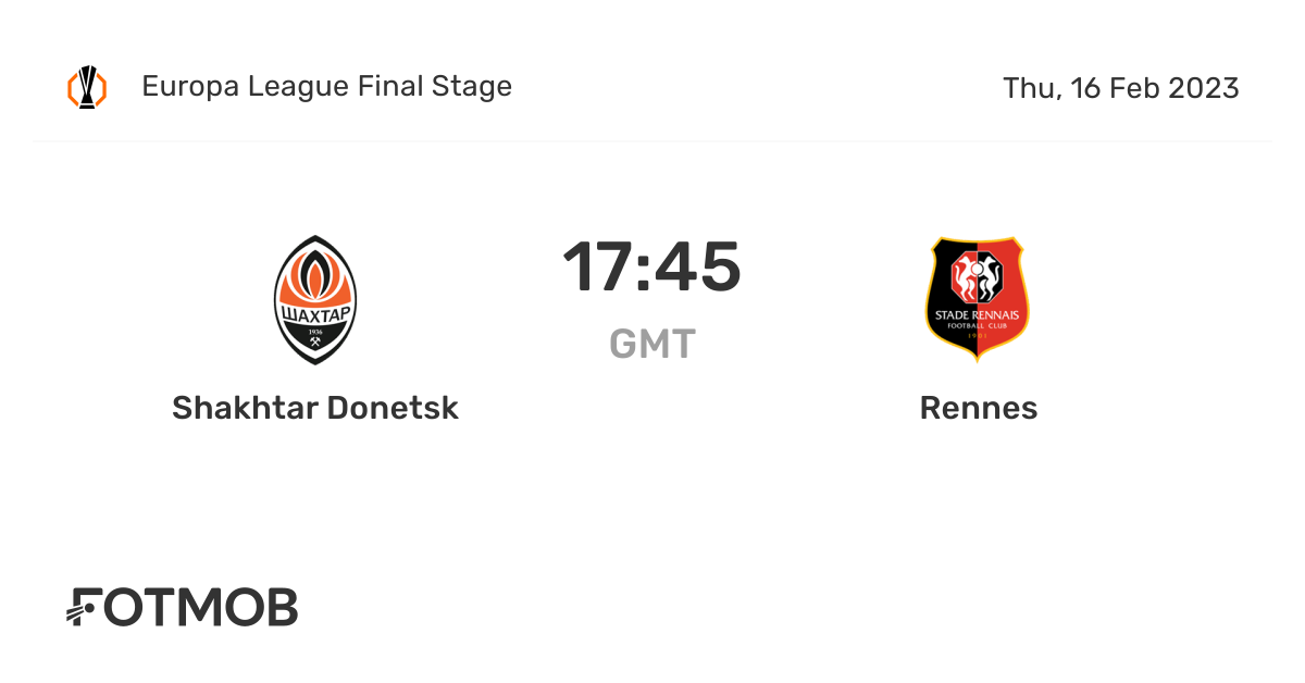 . Web Shakhtar Donetsk will play the next match against Stade Rennais on Feb 16 2023 54500 PM UTC in UEFA Europa League. Web 17 hours agoShakhtar Donetsk will clash with Rennes in the knockout round play-off of the 2022-2023 UEFA Europa League. Web Teams Shakhtar Donetsk Rennes played so far 1 matches.