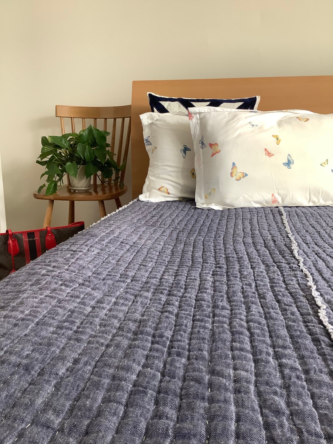 Handmade Quilt Set Denim Blue Flax Linen Pick Stitch Quilt Etsy