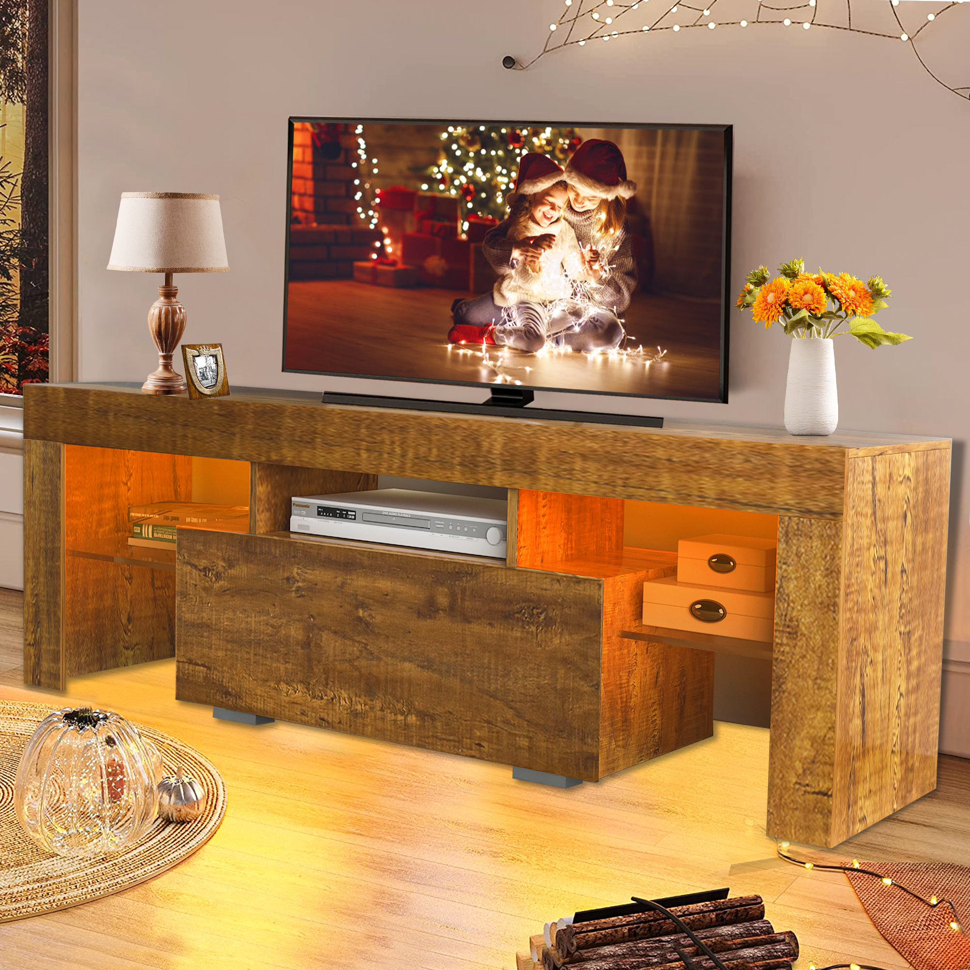 White Tv Stand For 55 Inch Tv Modern Led Tv Stand W 16 Colors 4 Kinds Of Color Change High Glossy Tv Cabinet W Storage 2 Drawers 63 Inch Entertainment Center For Living Room Oak Walmart Com