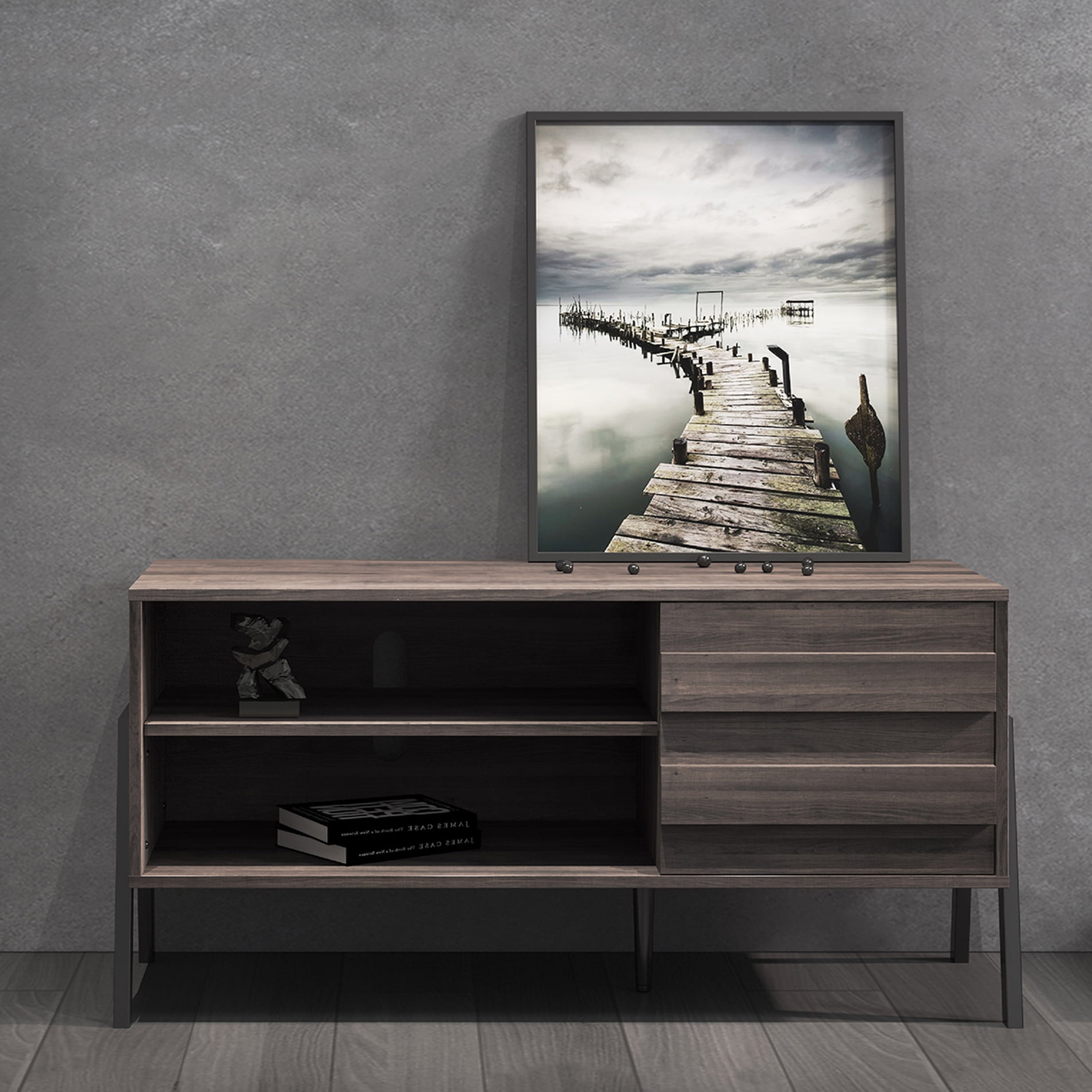 Mid Century Tv Stand For 55 Inch Wood Entertainment Center Tv Console Media Table With Door For Living Room Bedroom Espresso Walmart Com